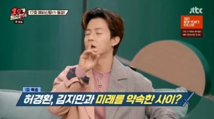 이날 방송에서 김태균은 "개그맨 허경환이 한 방송에서 50살까지 소로 결혼 안 하면 김지민과 결혼하자고 약속한 사실이 맞느냐"고 묻자 김지민은 "서로 결혼 못 하면 그러자고 했다. 약속했던 때가 서른 살이었는데 이렇게 오랫동안 결혼을 안 할지 몰랐다"고 말했습니다.