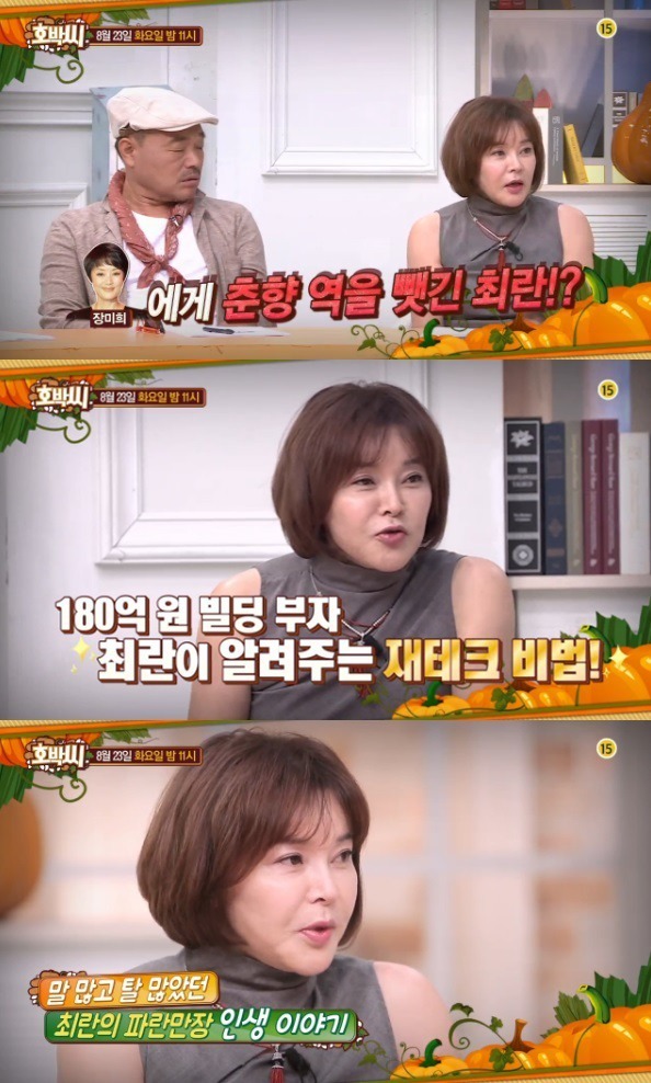 "이 돈이 종자돈이 됐다"고 귀띔했습니다. 최란은 "탤런트가 이런 말을 하면 안 되지만 드라마보다는 뉴스를 즐겨보고, 백화점보다 공인중개소를 더 자주 찾았다"면서 "경제가사를 많이 읽다보니 언제 어떻게 팔아야 하고,