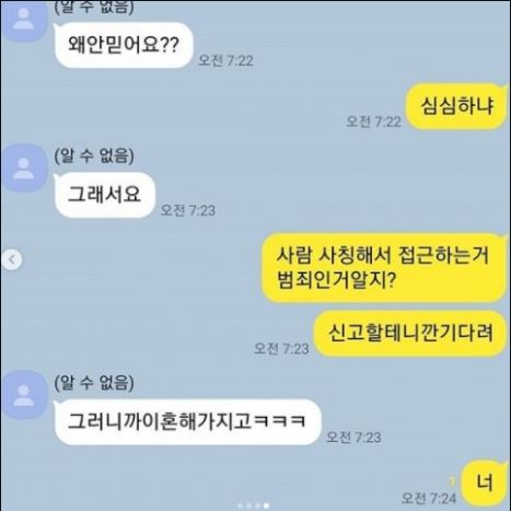 핸드폰번호로 다른사람 사칭해서 남의 아픔가지고 약올리고 사라지고