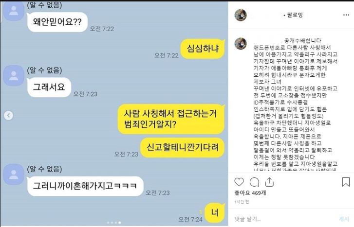 제보자 그녀 꾸며낸 이야기로 인터넷에 유포하고 전 두번의 고소장을 접수했지만