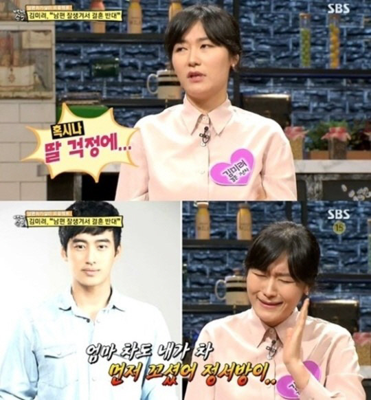 김미려: "엄마가 처음 남편을 보고 '얼굴이 너무 예뻐서 잘 안 될 것 같다. 남자는 얼굴값 한다'고 말씀하셨다". 그러나 저는 자신감이 있었기에 엄마한테 '차도 내가 먼저 찬다. 오히려 남편이 먼저 대시했다'고 말했다."