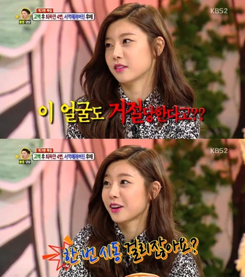 소진: "한 남자를 5년간 짝사랑한 적이 있다. 한 번 시동이 걸리면 오기가 생긴다. 술 취할 때마다 그 남자에게 문자를 하거나 전화를 했지만 날 받아주지 않았다. 데뷔 후 후회한다고 연락 오더라."