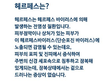 완치가 불가하고 경우에 따라 고통이 심하다. 이 중 1형은 입술 쪽에 물집이 생기는 경우가 흔하고, 헤르페스 2형은 성기 쪽에 물집이 생기기에 성병으로 분류한다. 수두와 대상포진을 일으키는 바이러스도 헤르페스의 일종(헤르페스 3형)이다.