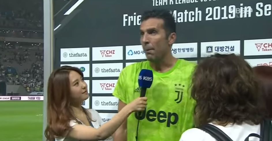 빠듯한 시간이 주어져 통역 단계를 한번이라도 줄이고자 영어로 인터뷰를 진행하는 것으로 부폰 선수에게는