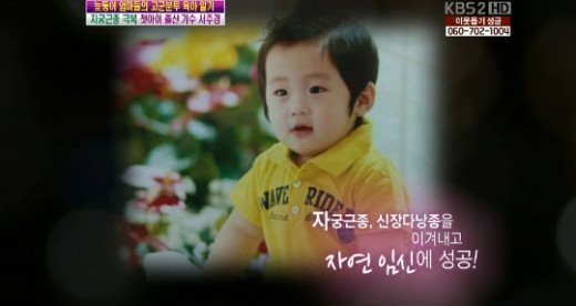 . .자궁근종에 신장병까지 겹친 서주경이었기에, 임신이 불가능할지도 몰랐습니다. 하지만 서주경은 끝까지 자궁을 드러내지 않고 치유에 힘썼고, 결국엔 자연 임신으로 아들을 낳을 수 있었네요.