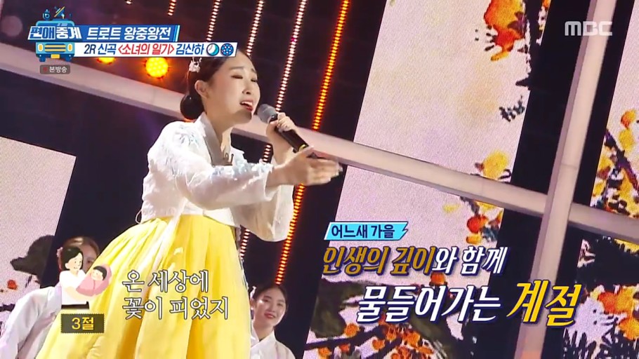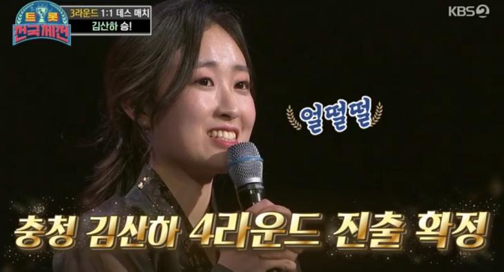트로트 가수 김산하의 최근 근황 소식으로는 트로트 오디션 프로그램 '트롯전국체전'에 참가하고 있습니다. 3라운드 1대1 데스매치에서 트로트 가수 '진해성'을 걲고 4라운드 듀엣 미션에 올라갔다고 하네요.