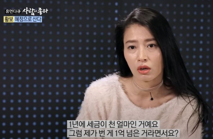 그녀는 "통장이 내 이름으로 돼 있었지만, 통장을 내가 갖고 있지 않았다. 사무실에서 찾을 수 있는 돈이었다"며 "근데 나한테 세금이 날아왔는데 천 얼마가 나왔더라“라고 설명을 이어갔습니다.