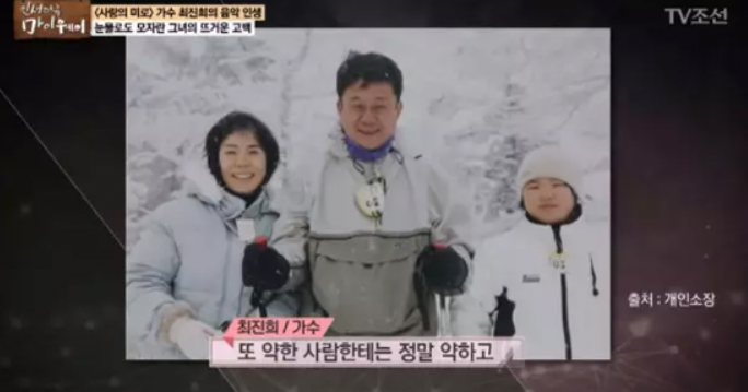 이후 1년 후에는 어머니도 세상을 떠나며 최진희는 깊은 슬픔에 빠지게 되었다고 하는데요. "평생 아버지를 병간호하고, 자식 여섯을 먹이고 키우고, 한 여자의 인생이라는 것이 하나도 없었다. 그 불쌍한 것은 어떻게 말을 할 수 없었다"라고 고백했습니다.