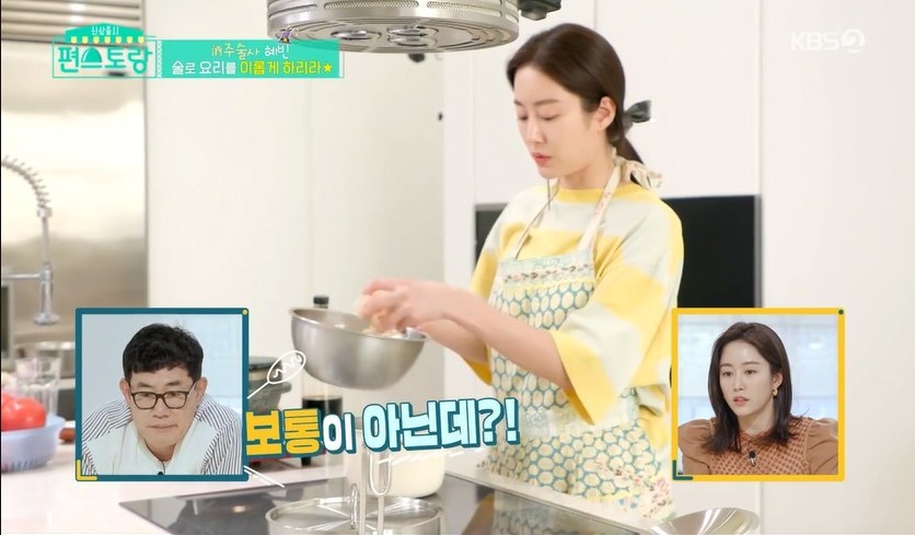 신혼 6개월차 전혜빈이 각종 술을 이용해 이색적인 요리를 선보여 눈길을 끌었는데요.