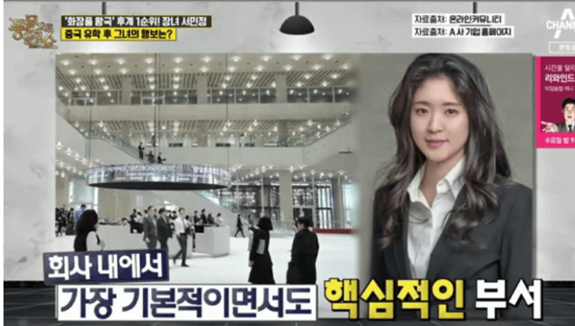 서민정 씨는 미국 코넬대 경제학과를 졸업하고, 미국 글로벌 컨설팅 회사 베인앤컴퍼니에서 일했습니다. 2017년 1월 아모레퍼시픽에 경력사원으로 입사해 오산공장에서 일하다 같은해 6월 퇴사했습니다. 중국 명문 장강상학원(CKGSB)에서 경영학석사(MBA) 과정을 마친 후에는 중국 2위 전자상거래기업 징동닷컴에서 일했는데요. 2019년 10월 아모레퍼시픽에 재입사해 현재 국내 화장품 채널 조직인 뷰티 영업 유닛의 뷰티영업전략팀 과장으로 일하고 있습니다. 재벌 후계자가 과장급으로 일하면서 입사 때부터 관심을 받았습니다.