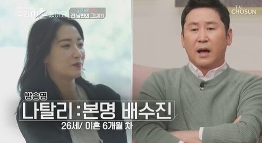 배수진은 2020년 11월 27일 방송된 TV CHOSUN 예능 '우리 이혼했어요(우이혼)'에서는 최고기·유깻잎의 지인으로 출연했는데요.