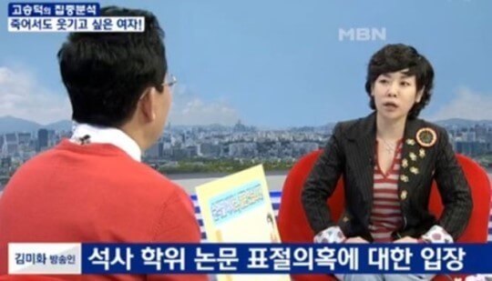 김미화 씨의 논문 표절 보도가 나온 것은 2013년 입니다. 김 씨가 2011년 성균관대 언론정보대학원에서 받은 석사학위 논문 '연예인 평판이 방송 연출자의 진행자 선정에 미치는 영향'의 상당 부분이 표절됐다는 것이 보도의 핵심이었습니다.