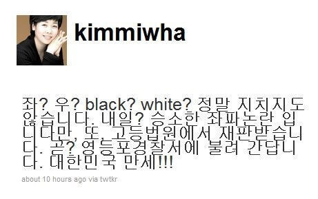 김이화 씨는 2010년 7월 자신의 트위터를 통해 KBS 내부에 출연금지 문건, 이른바 블랙리스트가 존재하고 있어서 자신이 출연하지 못한다고 주장했습니다. 물론, 이후 KBS는 김미화 씨의 근거없느 추측성 발언은 명예 훼손에 해당된다며 소송을 제기했는데요. 석 달 동안 서로 공방을 벌이가 KBS가 고소를 취하하면서 마무리됐습니다.