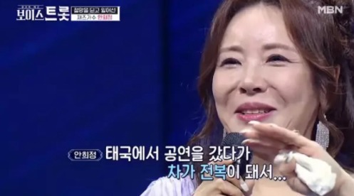 안희정은 안정환의 사촌누나이기도 한데요. 2020년 MBN 보이스트롯에 출연을 하면서 인지도를 상당히 높였습니다. 과거에도 안정환 사촌 누나라는 점이 화제가 되기도 했지만 이제는 안희정 자체로 주목을 받고 있습니다.