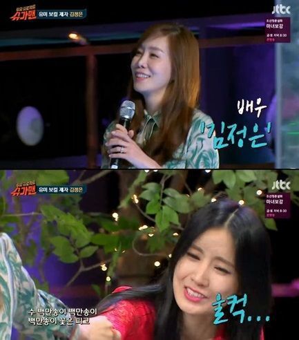 또한 김정의 경우도 유미가 슈가맨에 출연했을 때 깜짝 출연으로 무대를 함께 하기도 했고, 또한 놀면 뭐하니에서는 김정은의 지인으로 유미가 초대되기도 했으며, 김정은 결혼식 날 결혼식 축가를 유미가 불러주었다고 하네요.