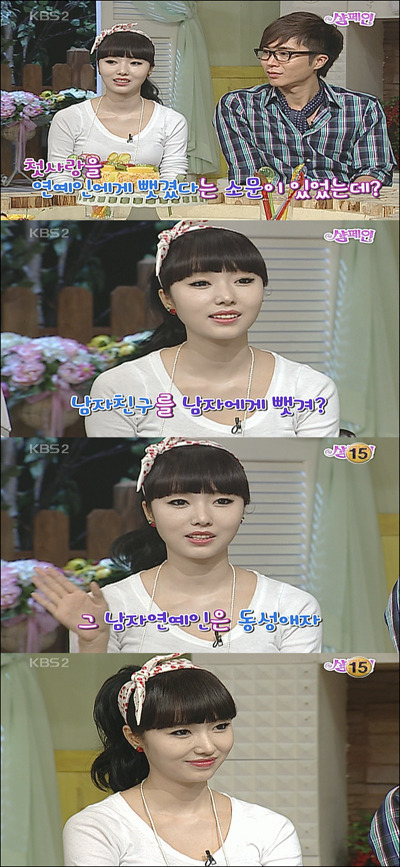 이정현: "예전 남자친구를 남자 선배 연예인에게 뺏긴 적이 있다. 당시에 포옹하고 키스하는 두 사람을 목격하고 너무 놀라 한동안 사람처럼 지내지 못했다."