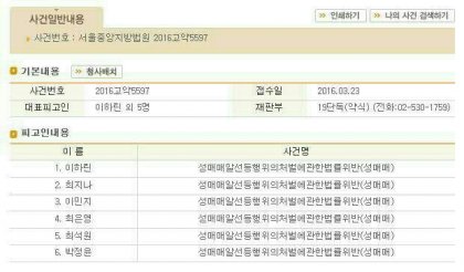 피고인들 가운데는 유명 연예인과 이름이 같은 경우가 있었는데, 특히 미스코리아 출신 이민지와 최은영은 자신들의 사진이 무분멸하게 사용된 것에 대해 강하게 항의한 뒤 소송을 제기했고, 승소했습니다.