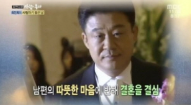 두 사람의 만남에 대해 "남편이 부산에서 큰 사업을 했는데 그 회사 행사에 초대되어 갔다. 그때는 남편이 날 좋아하는 줄 몰랐다. 아무렇게나 먹고 즐겼는데 자꾸만 연락이 오고, 매니저를 통해서 회사에 몇번 초대했다“라고 밝혔습니다.