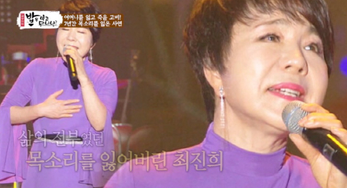 어머니가 돌아가시고 난 뒤 최진희는 슬픔과 충격으로 매일을 울었다고 하는데요. 결국 너무 많이 울어서 목소리가 안 나올 정도였다고 합니다.