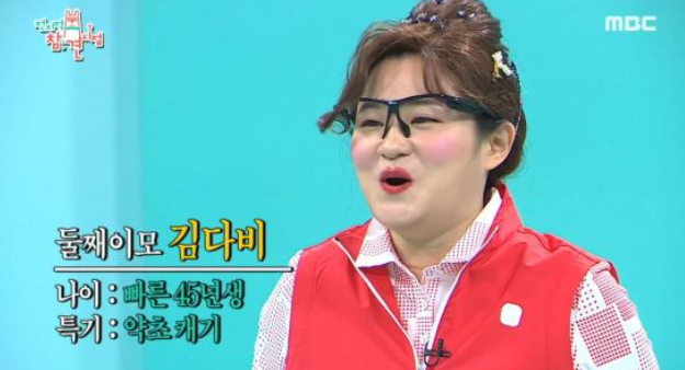 둘째이모 김다비는 개그우먼 김신영이 만들어낸 캐릭터로 자신의 실제 둘째이모에서 모티브를 따왔다고 합니다. 하지만 실제 이름은 다르다고 하는군요.
