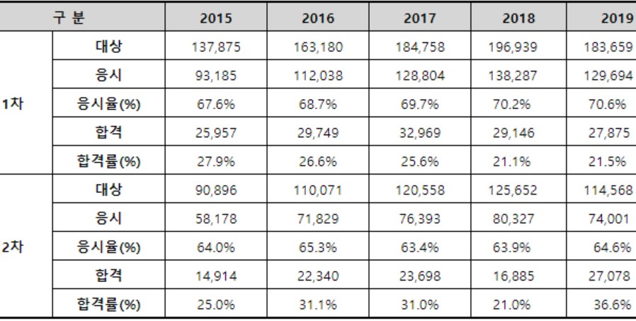 인기가 많아서 나도 도전해볼까 하는 마음이 들었던 공인중개사. 그런데 공인중개사 시험과목만 봐도 너무 어려워보여서 공부는 신중히 시작해봐야할 것 같습니다. 합격률은 1차는 21%, 2차는 36% 정도이고 합격자는 3만명 내외입니다. 준비해보겠다고 하면 계획적으로 또한 전략적으로 접근해봐야겠습니다.