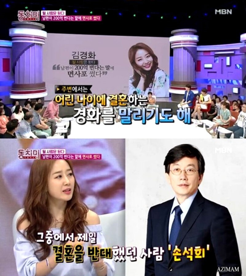 김경화 아나운서는 과거 MBN 동치미에서 "내가 결혼을 일찍 했다. 대학교 4학년 때 지금의 남편을 만났는데 4년 연애 후 MBC 3년 차에 결혼을 했다. 그때 내 나이가 만으로 24세였다"라며 "손석희 선배가 그 사람은 네가 아이를 낳아도 목마를 못 태워 줄거야 라며 반대했다"고 말해 웃음을 자아냈습니다.