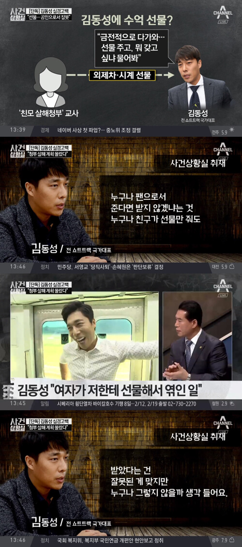 김동성 "(여교사 A씨가) 먼저 선물을 주고 또 뭐 갖고 싶냐 계속 물어봐서 '시계 이거 좋아해', '차 이거 좋아해' 이렇게 얘기한 적은 있었다."