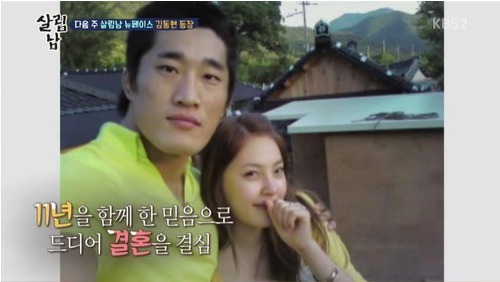지난 '살림남2'방송 말미에 새로이 합류하게 될 김동현 송하율 예비부부에 대한 간략한 소개영상이 나온 바 있습니다. 김동현은 "예비 신부는 함께한지 무려 11년이나 된 동거동락하면서 정을 쌓아 온 친구"라고 소개하면서, "2007년 예비신부는 22살, 전 28살때 처음 만났다"고 했습니다.