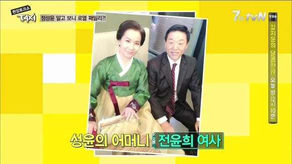 아버지가 용산 전자상가에서 일을 했고, 정성윤 어머니가 무용계의 유명인사였던 전윤희(예명)입니다. (본명은 전연분, 김미려 시어머니)