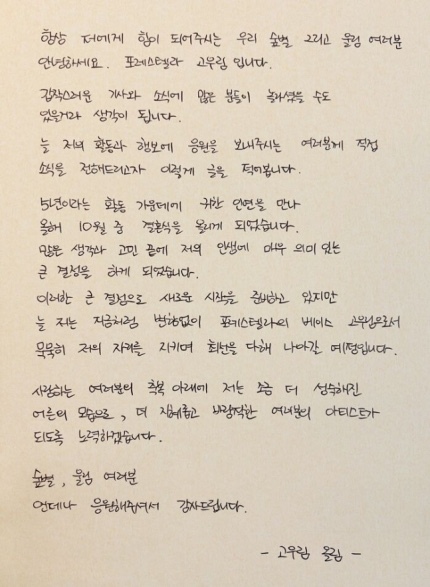 고우림은 직접 쓴 손편지를 팬카페에 올려 결혼에 대한 소감을 전했는데 그저 신기할 뿐!!!