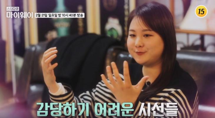 노희지 : "조금만 나서는 행동을 해도 뒷말이 들렸어요. 남들이 욕하는 게 들리면서 자신감을 잃었죠. 입학식 날 선배들이 우르르 몰려와서 창문에서 쳐다보더라고요. 연예인 같지도 않고 예쁘지도 않다는 소리가 들리고 눈빛도 곱지 않았는데, 그게 큰 상처가 됐죠"