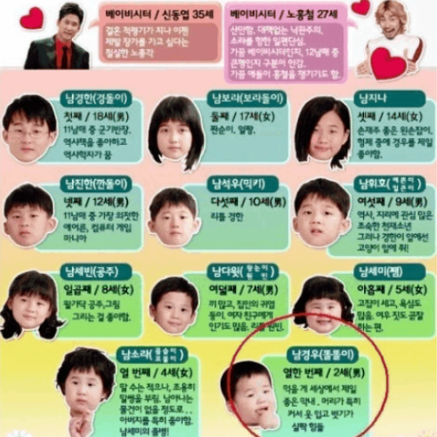 남동생(6남) 남경우(2004년생),