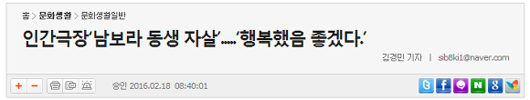 (1/2) 총 2개의 글중 첫번째 글- 남보라 13남매와 동생 자살 사건 이후에
