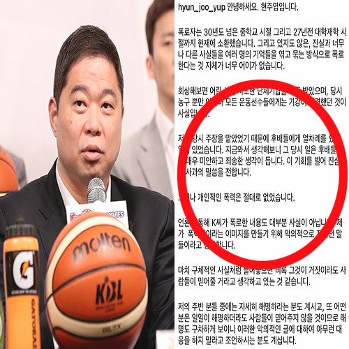 이어 "후배들이 잘못한 경우 장기판의 모서리로 때리기도 했다"며 현주엽이 현재 출연 중인 방송의 하차와 사과를 요구했습니다.