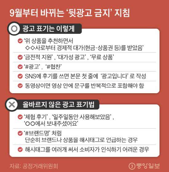 오늘 즉 9월 1일부터 유튜브와 인스타그램을 통한 뒷광고 금지가 엄격히 시행이 됩니다. 그리고 10월까지 자율협약안이 마련이 되고 표시 광고와 관련한 세부안을 마련할 예정이라고 합니다. 이미 최근 여러 유튜버들과 인스타그램과 관련한 인플루엔서들이 광고인 것을 제대로 밝히지 않고 그대로 방송을 틀어서 비난과 비토의 여론을 받게 되었습니다.