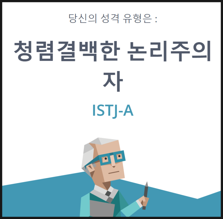 오늘은 시간을 두고 천천히 한 결과 INTJ가 아닌 ISTJ가 나왔네요ㅎㅎ