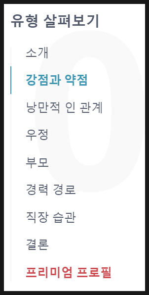 다음에는 각 성격유형에 대해 정리해 보겠습니다.