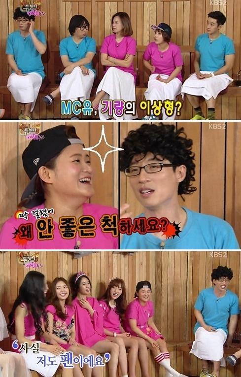 박기량: "현재 남자친구는 없다. 내가 키가 커서 나보다 키 큰 남자가 좋다. (남자친구는) 재미있었으면 좋겠다. 유재석씨가 내 이상형의 성격과 제일 가까운 것 같다. 매너도 좋으시고..."