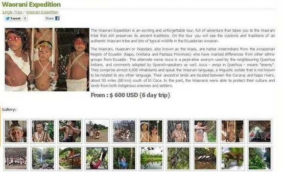 하지만 곧이어 와우라니 족 관광 상품이 있다는 것이 밝혀집니다.