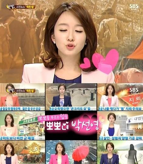 * 박선영 아나운서 뽀뽀녀 이유 참고로 SBS 8시 뉴스를 진행하면서 박선영은 뽀뽀녀라는 별명을 갖게 됩니다.