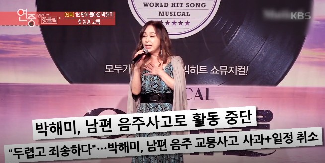 당시 박해미는 남편의 음주 교통사고로 인해 가슴이 찢어질만큼 힘들어하면서 오열하는 장면이 나오기도 했습니다.