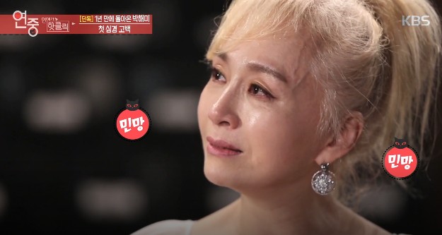 박해미는 약 1년전 전남편인 황민 씨의 음주운전 사건으로 어려운 이혼을 강행하였고, 뮤지컬 등 진행하던 모든 방송에서 하차하면서 그동안 마음고생이 상당했을 것으로 전하고 있습니다.