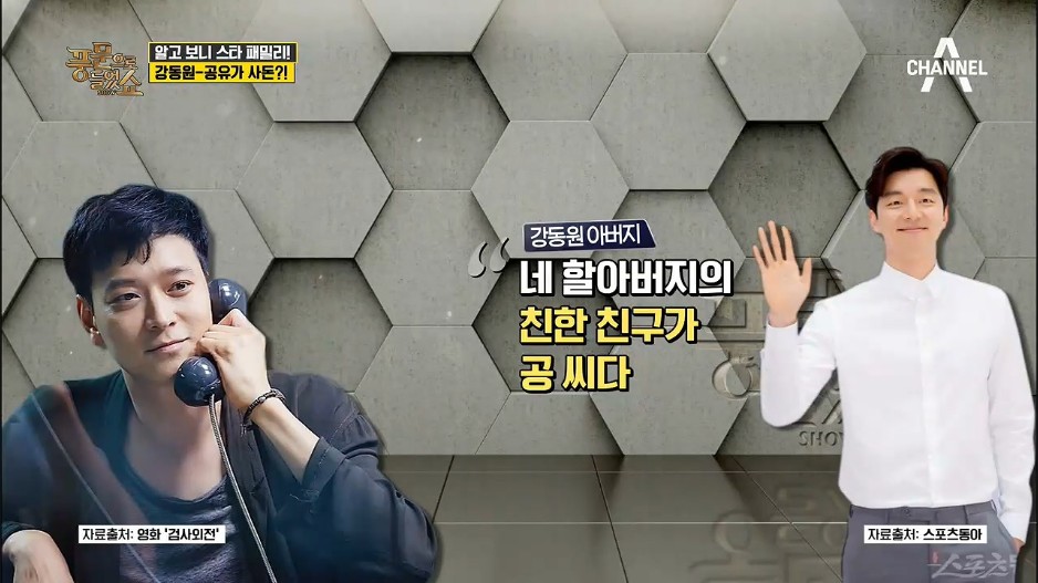 부산에서 강동원, 공유의 할아버지는 서로 호형호제하는 사이로 자식들끼리 서로 결혼을 시켜 사돈을 맺었다고 합니다. 서로 몰랐다고 하는것을 보니 직계 사돈 지간은 아니고 아버지의 다른 형제간 즉, 삼촌이나 고모 등이 사돈을 맺은것으로 추측됩니다.