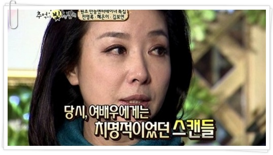 김보연은 “그때 당시로는 정말 힘들었다”며 “스캔들 치고는 오래갔다. 지금도 말하는 사람이 많다”고 설명했다.