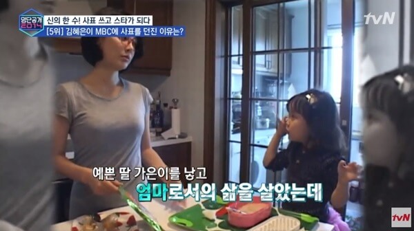 그렇게 기상캐스터 직을 퇴사한 후 7개월 만(결혼한 지 6년)인 2006년에 김혜은 딸 김가은이 태어나 가족들과 함께 과거에 공개한 서울시 서초구 서초동의 위치한 집에서 살아가게 됩니다. 참고로 똑같은 집에 오래 살다보니 한 번씩 손수 인테리어를 한다고 하네요.