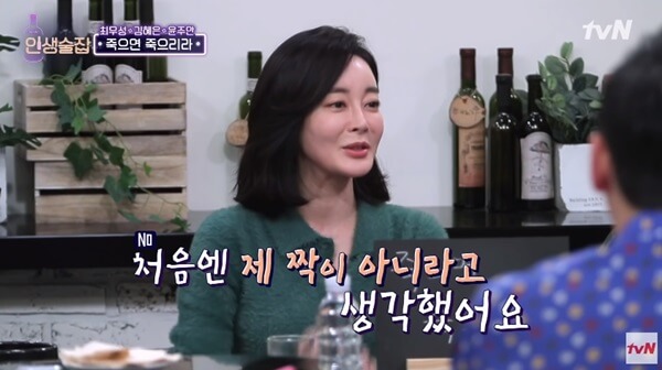 그러던 중 2001년 친분이 있었던 헤어 디자이너의 소개로 현재 남편 김인수와 소개팅을 하게 되는데요. 첫 만남부터 남편 김인수는 김혜은을 보고 반하게 되었으나, 그에 반면 김혜은은 남편 김인수의 첫 이미지가 자신의 스타일은 아니였다고 합니다.
