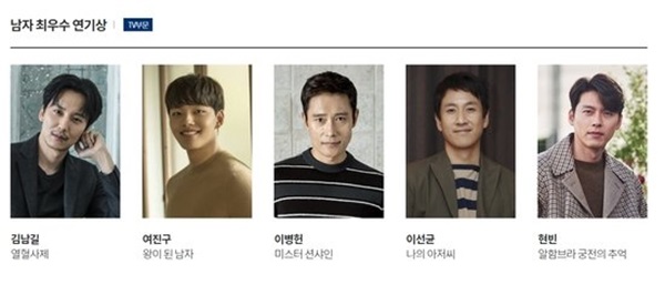 '제 55회 백상 예술대상'에서 김남길, 이병헌, 이선균, 현빈과 함께 남자 최우수 연기상 후보