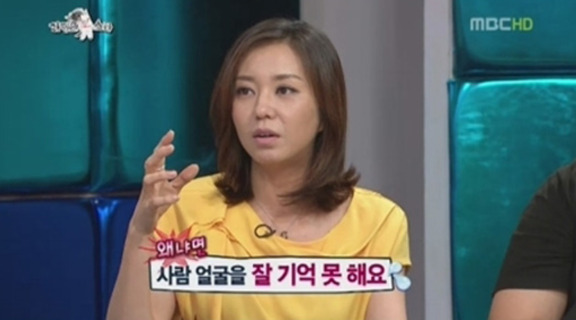 그녀는 사람을 10번 이상은 봐야 알아볼 수 있다고 밝히며 외국사람 얼굴이 다 똑같은 거 같아서 러브 액츄얼리를 7번이나 봤다고 털어놓기도 했습니다.