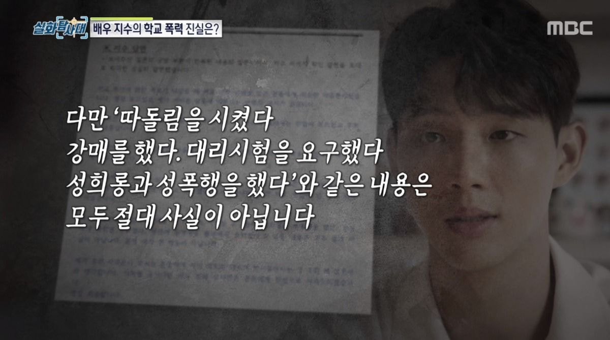지난 20일 방송된 MBC '실화탐사대'에서는 지수의 학교폭력 피해자들이 출연해 당시 피해 상황에 대해 자세히 입을 열었습니다.