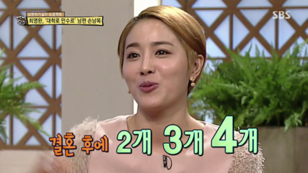 이어 남편 손남목이 결혼 1주년에 100만 원, 2주년에 200만 원씩 주기로 약속했으며 결혼 10주년에는 차를 선물해 주었다고 합니다.